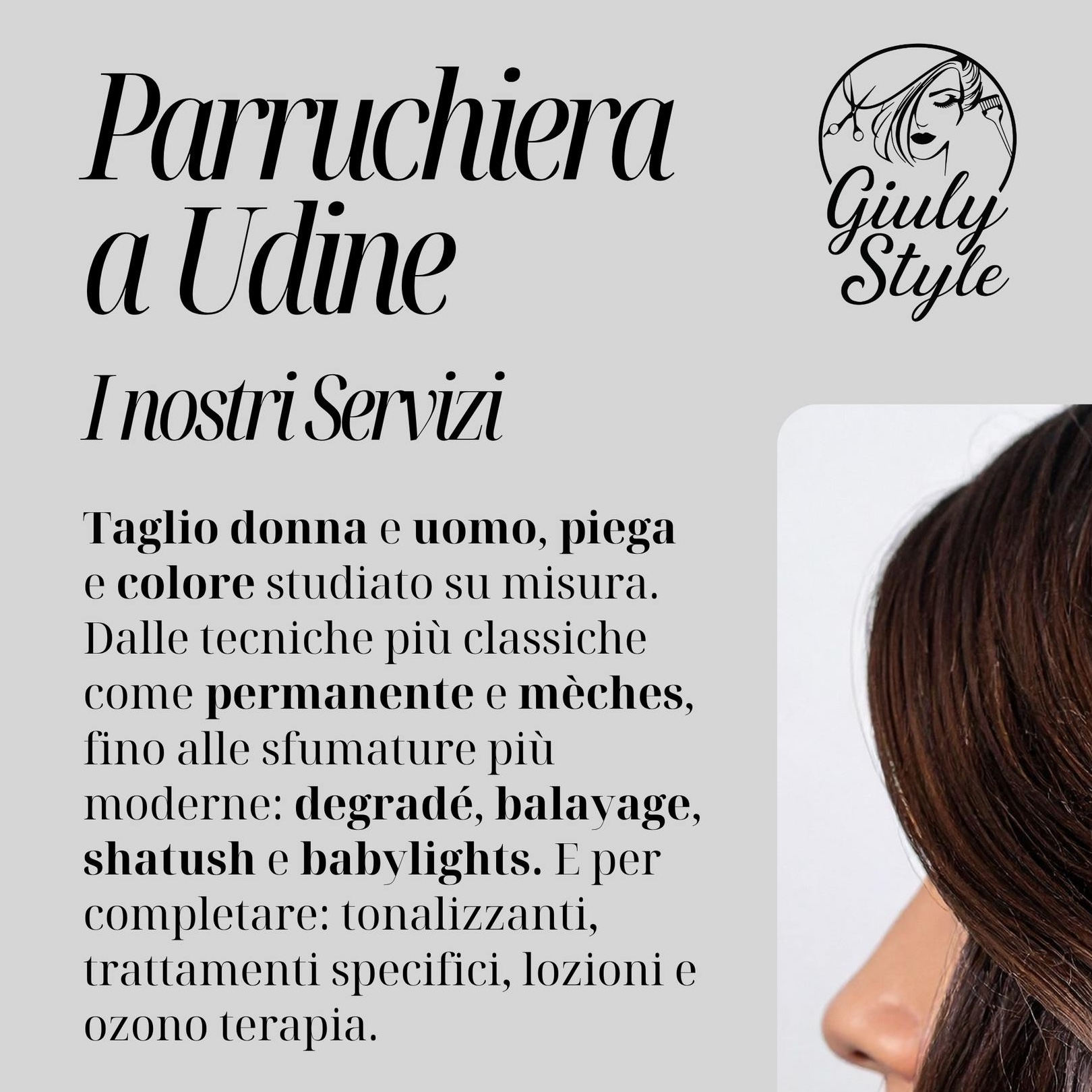 GiulyStyle è il tuo nuovo Salone dedicato alla bellezza, alla cura e al benessere dei tuoi capelli. Un ambiente pensato per farti sentire a tuo agio e risaltare al meglio il tuo stile.